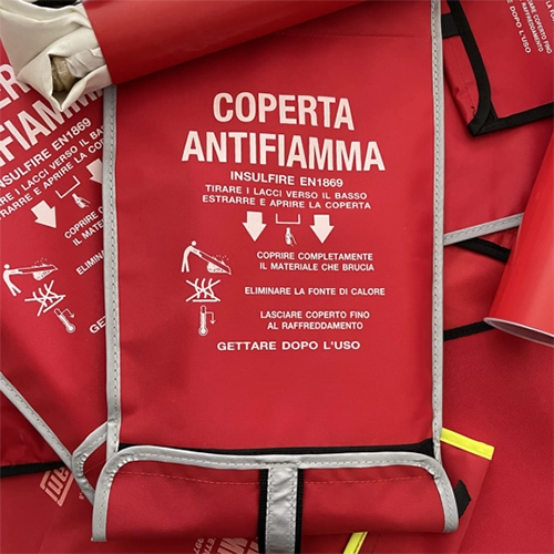 Coperte utilizzabili in caso di piccoli incendi per soffocare le fiamme e per la protezione dal fuoco di persone ed oggetti.